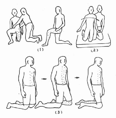 (2)对运动过度适用于手足徐动症等情况,进行远端固定,近端运动的方法,如让患者采取手、膝位手膝的位置不动,但在此位置上,使躯干作前、后、左、右和对角线式的活动,如范围较局限,可慢慢地抚摸或擦拭肌肉表面的皮肤。