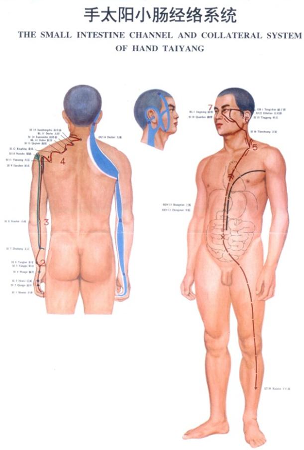 手三阳,从手至头;手三阴,从脏至手;足三阳,从头至足,足三阴,从足至腹。太阳、少阴行身之后,阳明、太阴行身之前,少阳、厥阴行身之侧。